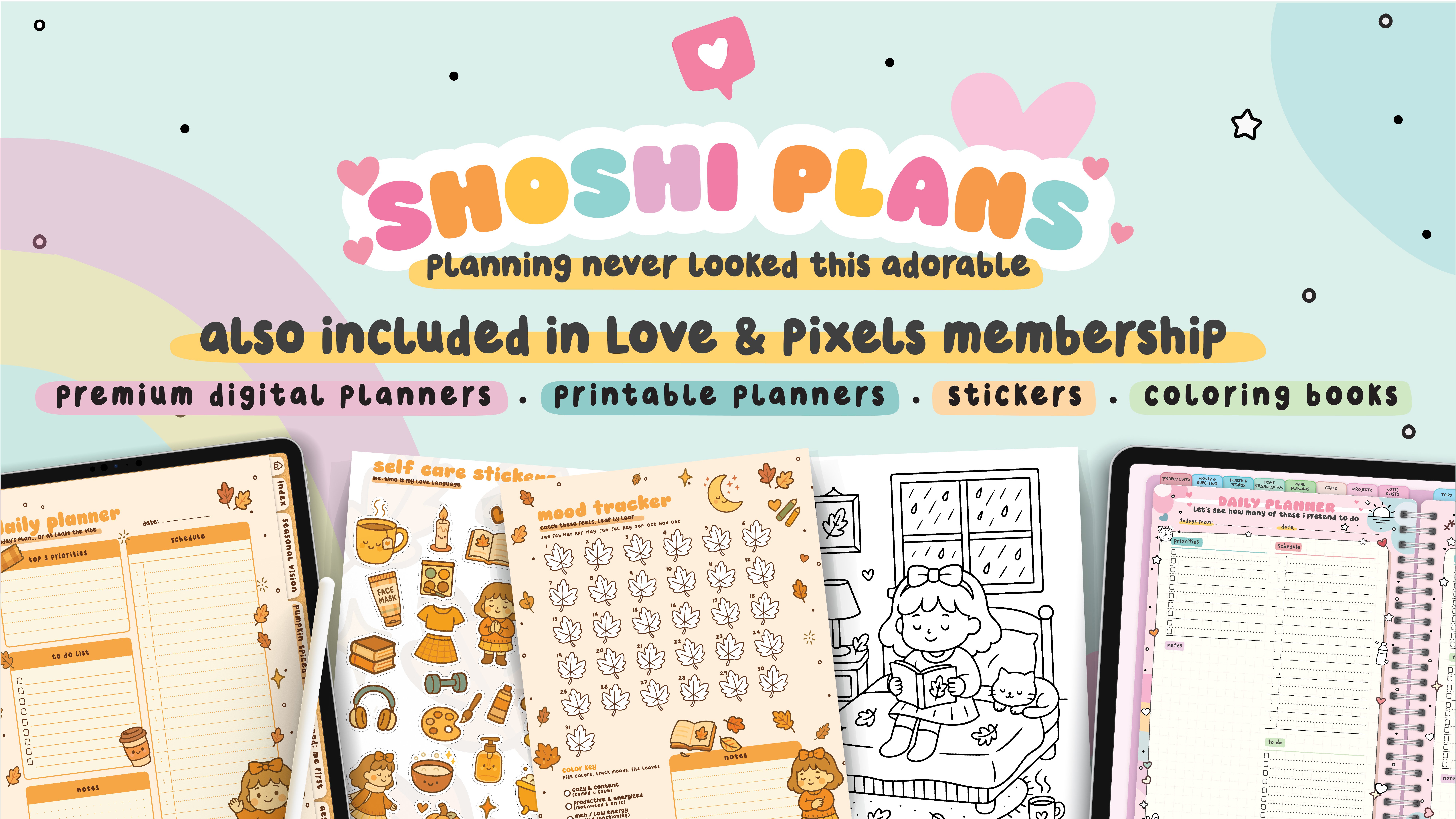 With this one-time membership, you'll unlock everything we’ve ever made (and everything still to come), such as our cute Shoshi Plans collection and more, including: