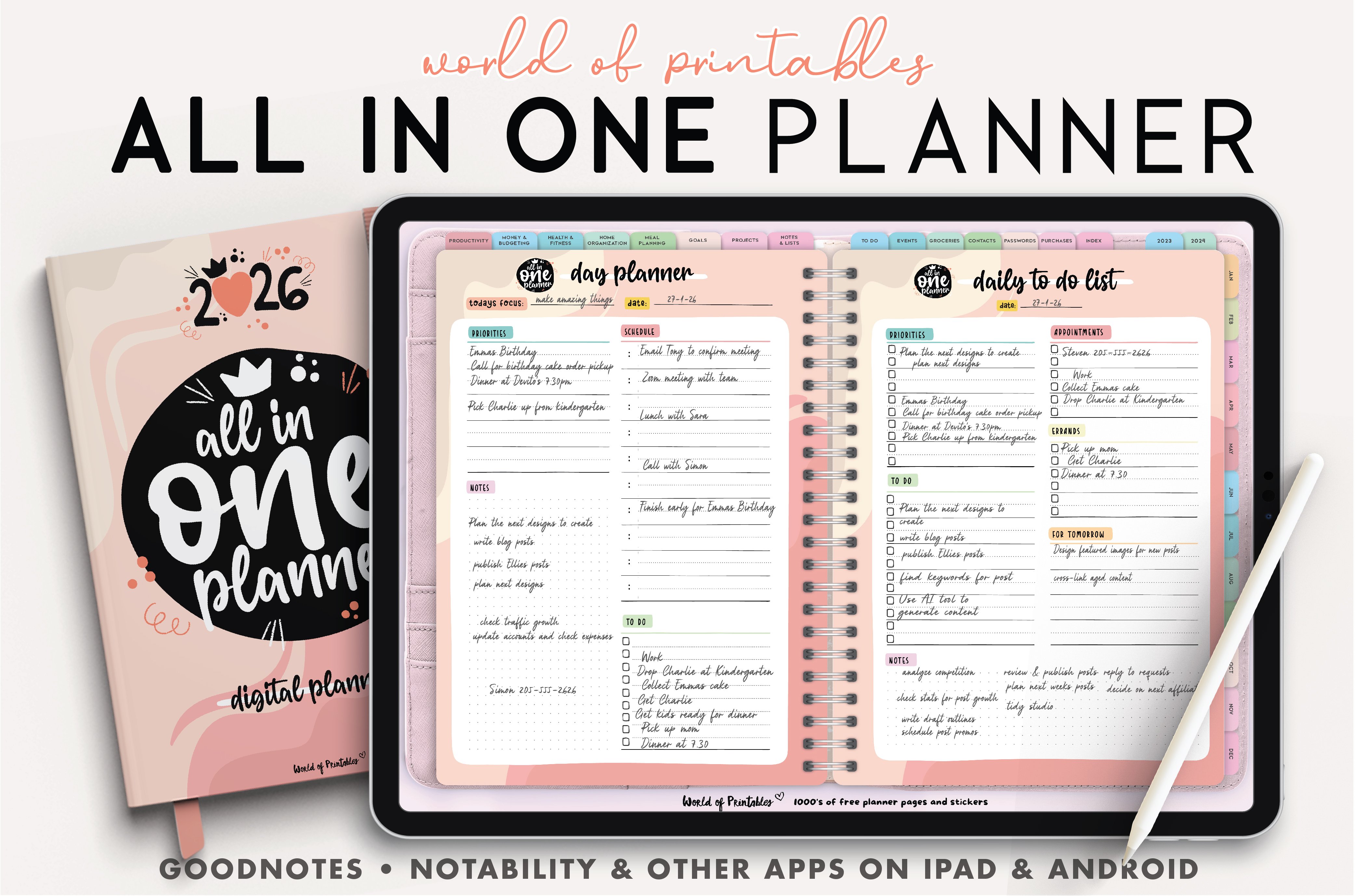 - 📝 Printable Inserts: Finance trackers, goal setters, meal planners, and more.